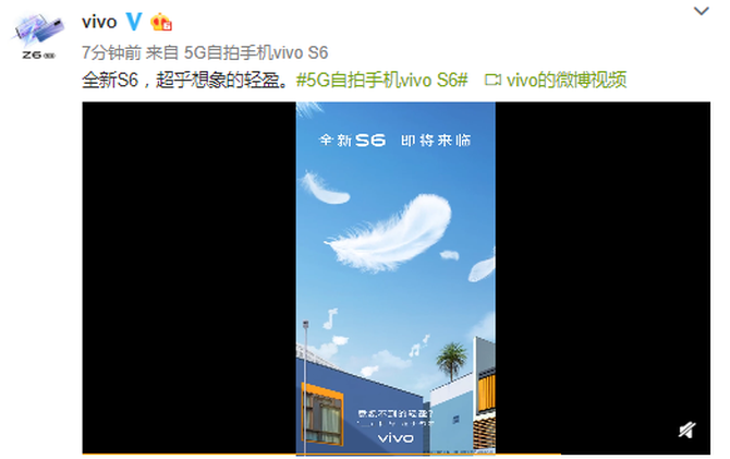 3月13日,vivo官方微博发布vivo S6新机小视频,曝光其或许选用超轻浮规划。继发布双模5G芯片和夜景自拍功用预告信息之后,这已是vivo官方第三次对vivo S6发声。如此频频的官宣动作,意味着vivo S6离正式发布应该不远了。